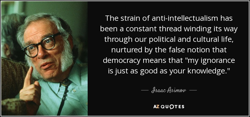 And there are many imitators who are attempting to emulate their modestly intellectually endowed brethren. These people are encouraged by the fact that society has abandoned fact-checking or the scientific method to screen out poor ideas, faulty concepts, and in general idiotic stuff. They think that because they exist, that alone makes them right.