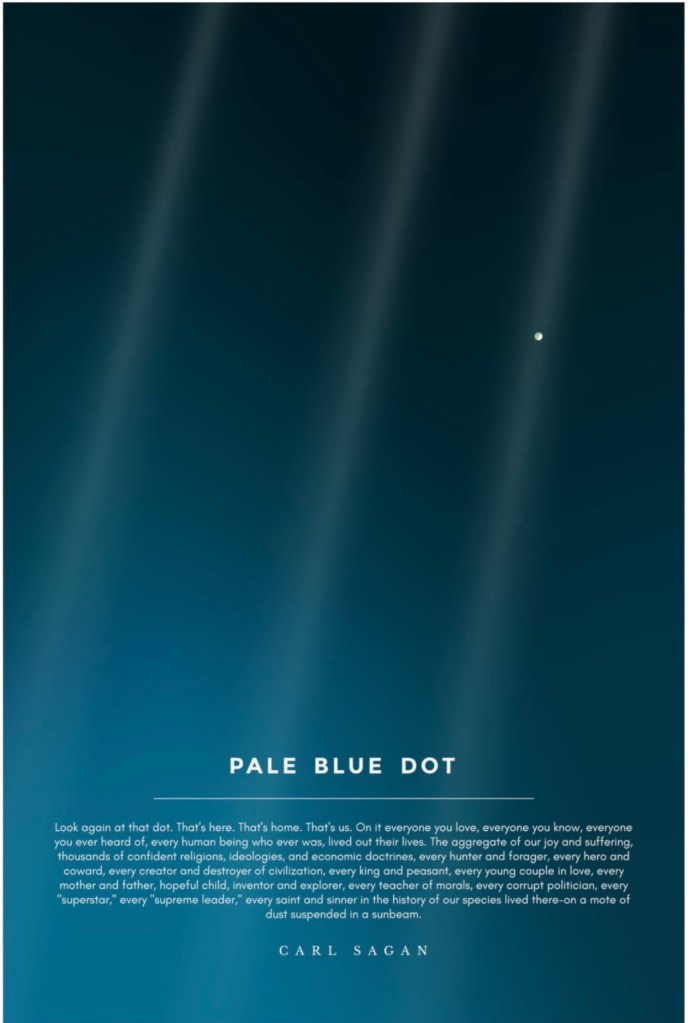 To quote Sagan: we all want to be the king, the emperor, the potentate of a fraction of a pixel of a dot. That dot is Earth. That’s our Only Home.